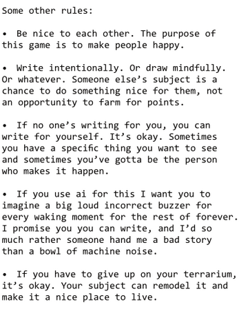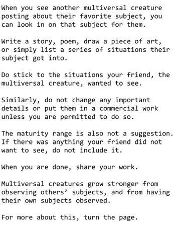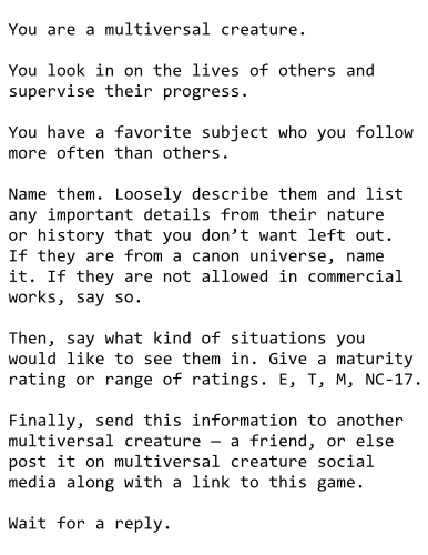 Charitable Chain is a 5 page writing game where your friends write / draw your OC.